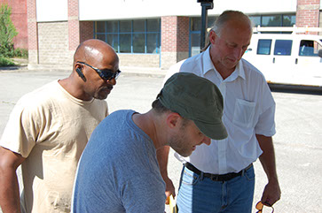 Fred Underwood (Underwood Solar), Timothy Gerhart (engineer), and Robert Ferry (LAGI) all meet on site.