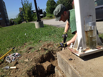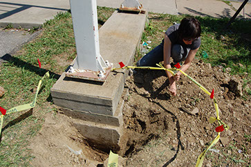 Investigating the existing concrete foundation.