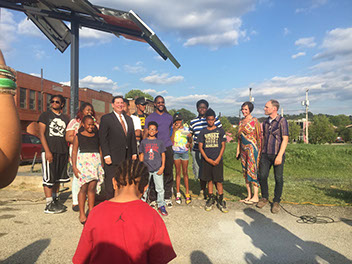 Campers pose with Mayor Peduto at the ribbon cutting celebration for